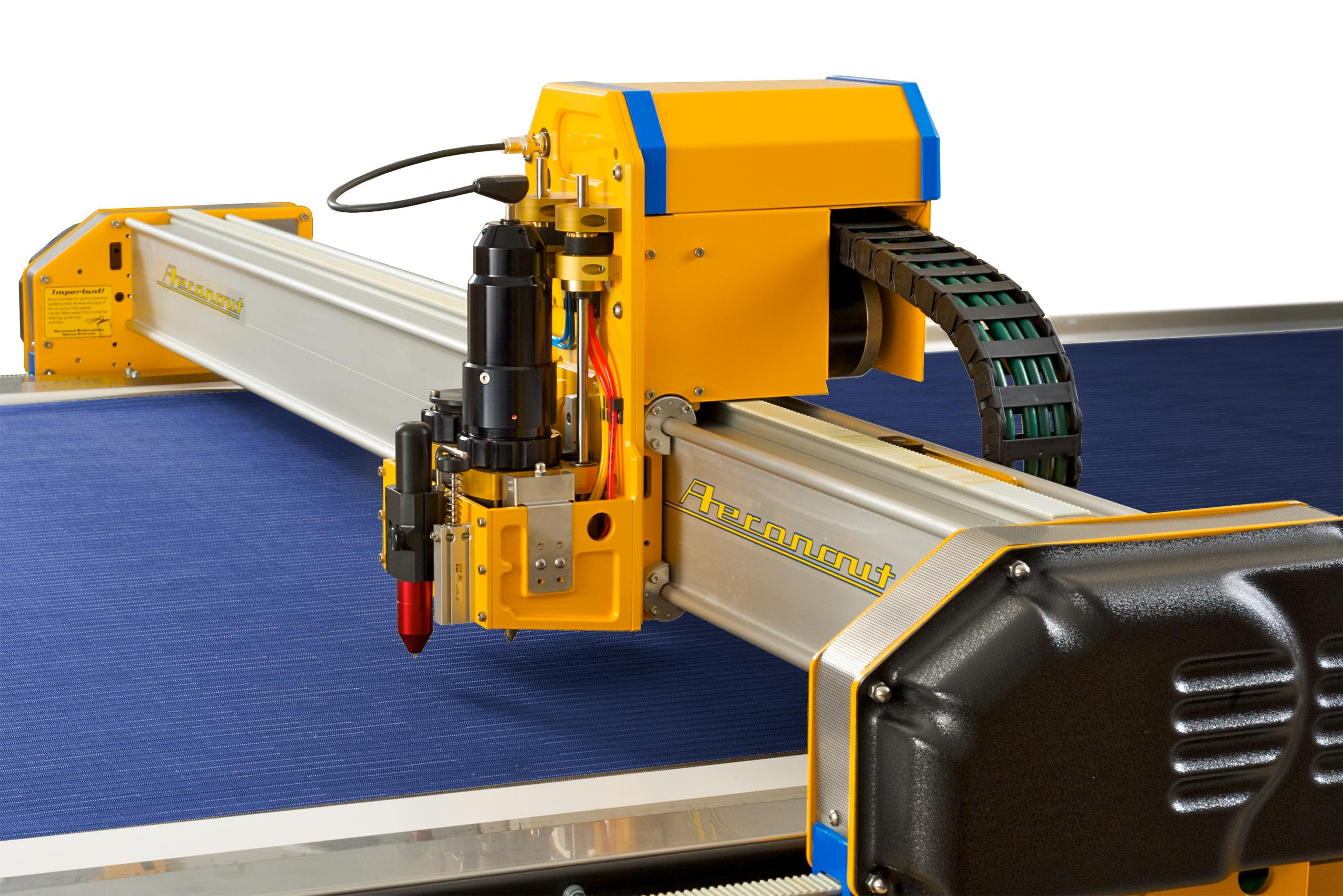 For applications requiring extreme pressure, such as cutting and creasing thicker materials, the tool axis can be made higher pressure. As with most Aeronaut cutters, tool pressure is software controlled.