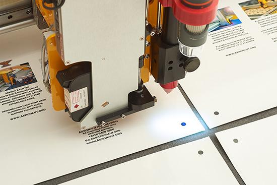 With Cyclops positioned over the first registration mark, Tangent will automatically move the camera to recognise the remaining marks and rotate and position the file's cut paths to fit the material on the table.
