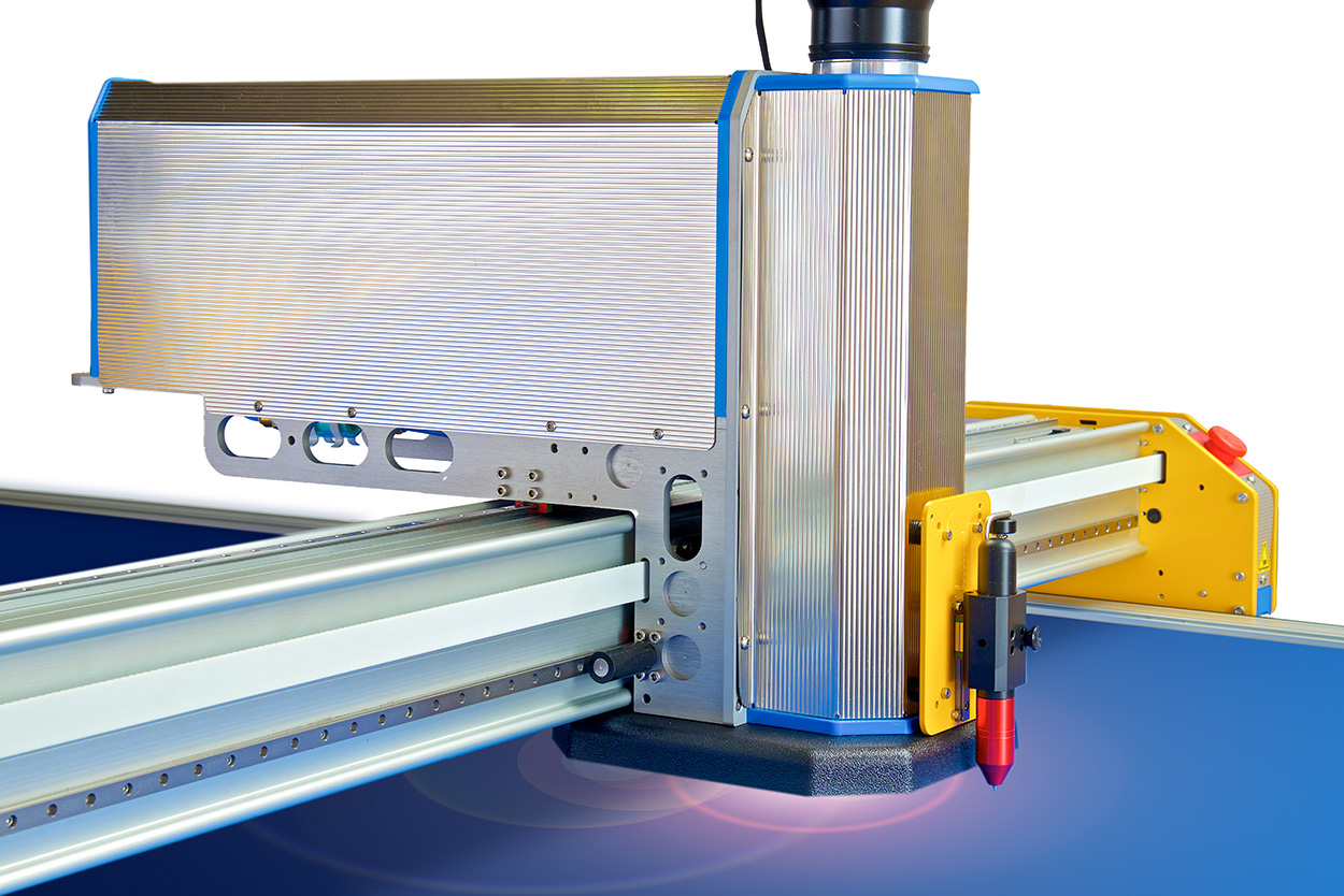 High power lasers have a long wheelbase Elektron gantry to handle the extra weight of the laser tube. They're industrial strength machines, rugged, stiff and very low maintenance.